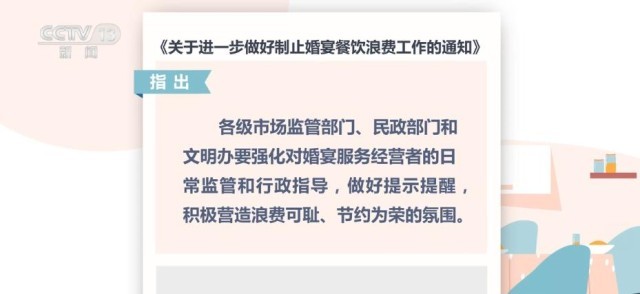 央視網(wǎng)消息:市場監(jiān)管總局、民政部和中央文明辦近日聯(lián)合印發(fā)《通知》,通過強化部門聯(lián)動,推進制止婚宴餐飲浪費工作。