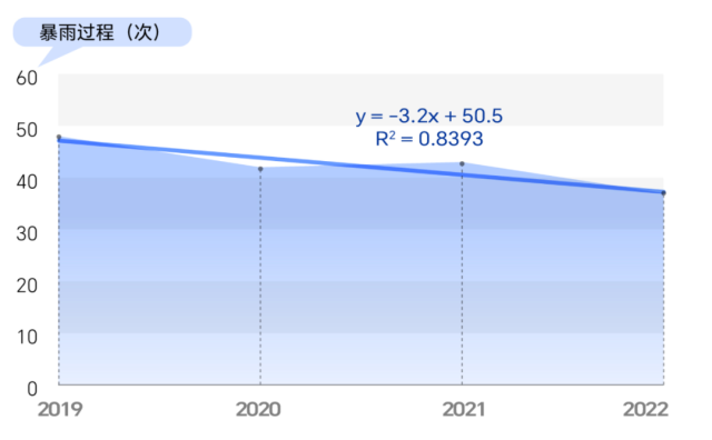 數(shù)據統(tǒng)計顯示,2012年至2022年,我國暴雨發(fā)生次數(shù)走勢振蕩,并沒有較為明顯的增加趨勢。并且自2019年以來,我國暴雨發(fā)生次數(shù)還有緩慢減少的趨勢。