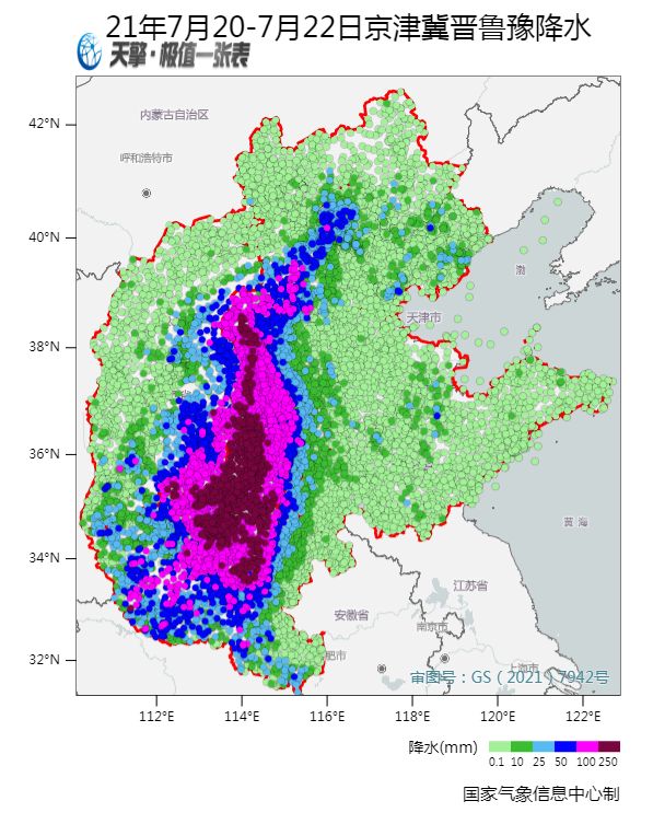 2021年7月20日至7月22日京津冀晉魯豫降水