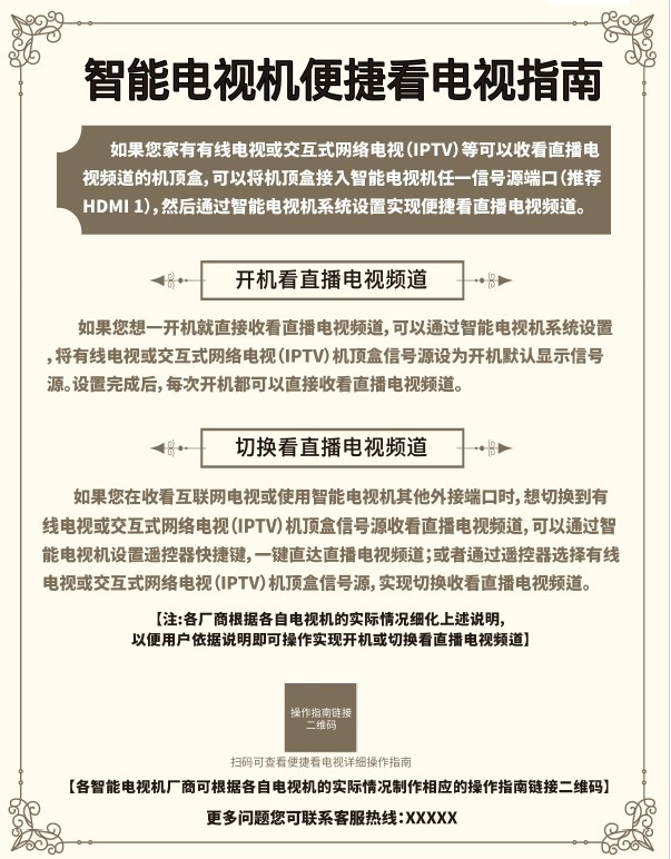 記者11月10日從國家廣播電視總局獲悉,根據(jù)治理電視“套娃”收費和操作復雜工作部署要求,國家廣播電視總局、工業(yè)和信息化部、國家市場監(jiān)督管理總局、中國消費者協(xié)會決定開展電視收看“明白卡”提示工作。自2023年11月起,各電視機生產(chǎn)廠商要將制作完成的《電視收看“明白卡”》裝入電視機包裝箱內(nèi)的說明材料中,同時在電商銷售頁面、線下實體銷售和廠商入戶安裝電視機過程中,將“明白卡”內(nèi)容向用戶明確展示,并告知用戶只有開通有線電視或IPTV方可收看電視直播頻道節(jié)目。(記者王鵬)