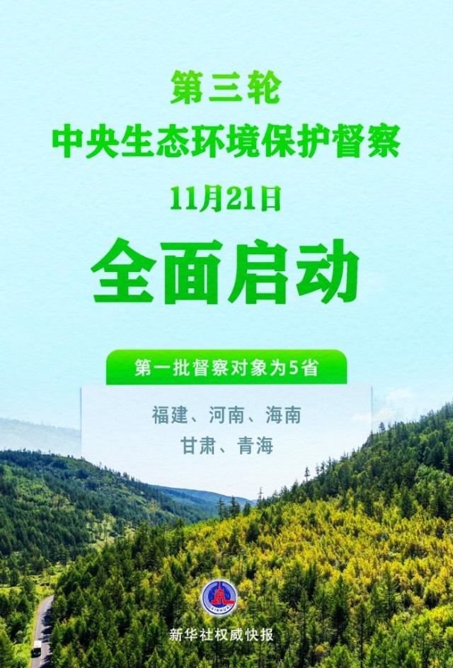 根據(jù)《中央生態(tài)環(huán)境保護(hù)督察工作規(guī)定》,經(jīng)黨中央、國務(wù)院批準(zhǔn),第三輪中央生態(tài)環(huán)境保護(hù)督察于11月21日全面啟動。