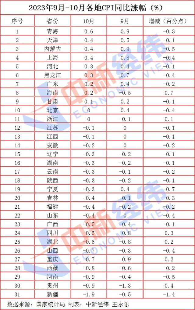 31省份10月CPI出爐:20地物價(jià)下降,黔豫晉“七連降”