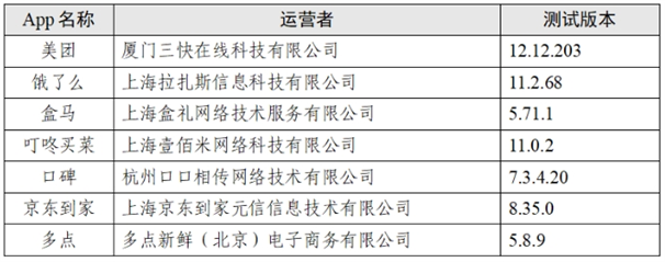 本次測(cè)試中國(guó)網(wǎng)絡(luò)空間安全協(xié)會(huì)選取了19家應(yīng)用商店累計(jì)下載量達(dá)到1億次的“餐飲外賣(mài)類”App,共計(jì)7款。