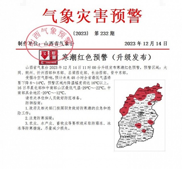 山西省氣象臺(tái)升級(jí)發(fā)布寒潮紅色預(yù)警