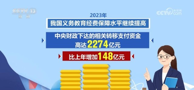 2023年,我國義務教育經費保障水平繼續(xù)提高,中央財政下達的相關轉移支付資金高達2274億元,比上年增加148億元。2023年,一系列義務教育重大工程項目繼續(xù)實施,讓中小學辦學條件不斷優(yōu)化。其中,義務教育薄弱環(huán)節(jié)改善與能力提升項目中央安排330億元,支持各地義務教育學校標準化建設。