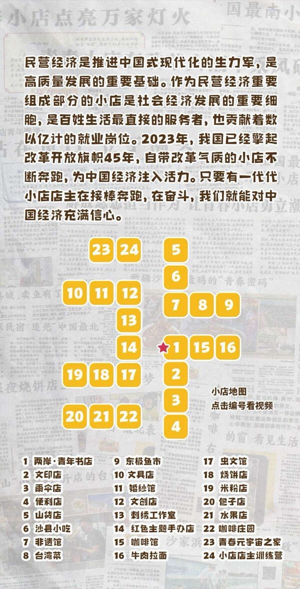 2023年是改革開放45周年,自5月起中國青年報發(fā)起"了不起的青春小店"尋訪調(diào)研,派出采編調(diào)研組奔赴全國各地探訪了60多個地方的青春小店,與上百家小店的創(chuàng)業(yè)青年深度對話,了解他們的急難愁盼,呼吁社會更多地關(guān)注這一群體。
