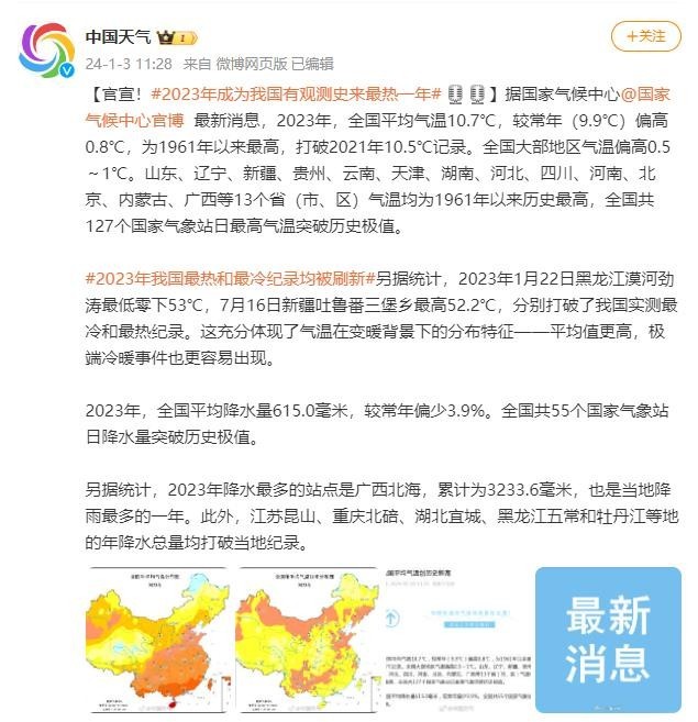 2023年我國最熱和最冷紀(jì)錄均被刷新
