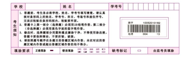 考生不得自行填涂“缺考標記”欄,如下圖所示: