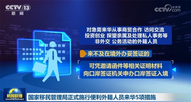 國家移民管理局正式施行便利外籍人員來華5項措施