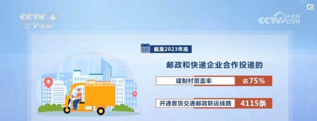 數(shù)據(jù)顯示,截至2023年底,中國(guó)郵政建成1061個(gè)縣、6010個(gè)鄉(xiāng)鎮(zhèn)的郵政處理中心和40萬(wàn)個(gè)郵政及郵樂(lè)購(gòu)村級(jí)站點(diǎn),郵政和快遞企業(yè)合作投遞的建制村覆蓋率達(dá)75%,開(kāi)通客貨交通郵政聯(lián)運(yùn)線路4115條。