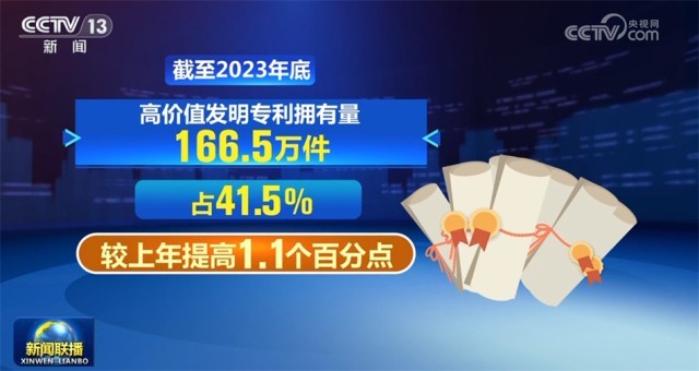 國(guó)務(wù)院新聞辦公室1月16日舉行新聞發(fā)布會(huì),國(guó)家知識(shí)產(chǎn)權(quán)局相關(guān)負(fù)責(zé)人介紹,截至2023年底,我國(guó)國(guó)內(nèi)(不含港澳臺(tái))發(fā)明專利有效量為401.5萬件,同比增長(zhǎng)22.4%,首次超過400萬件。其中,高價(jià)值發(fā)明專利擁有量166.5萬件,占41.5%,較上年提高1.1個(gè)百分點(diǎn)。國(guó)內(nèi)企業(yè)擁有有效發(fā)明專利290.9萬件,占比增至71.2%,首次超過七成,創(chuàng)新主體地位進(jìn)一步凸顯。