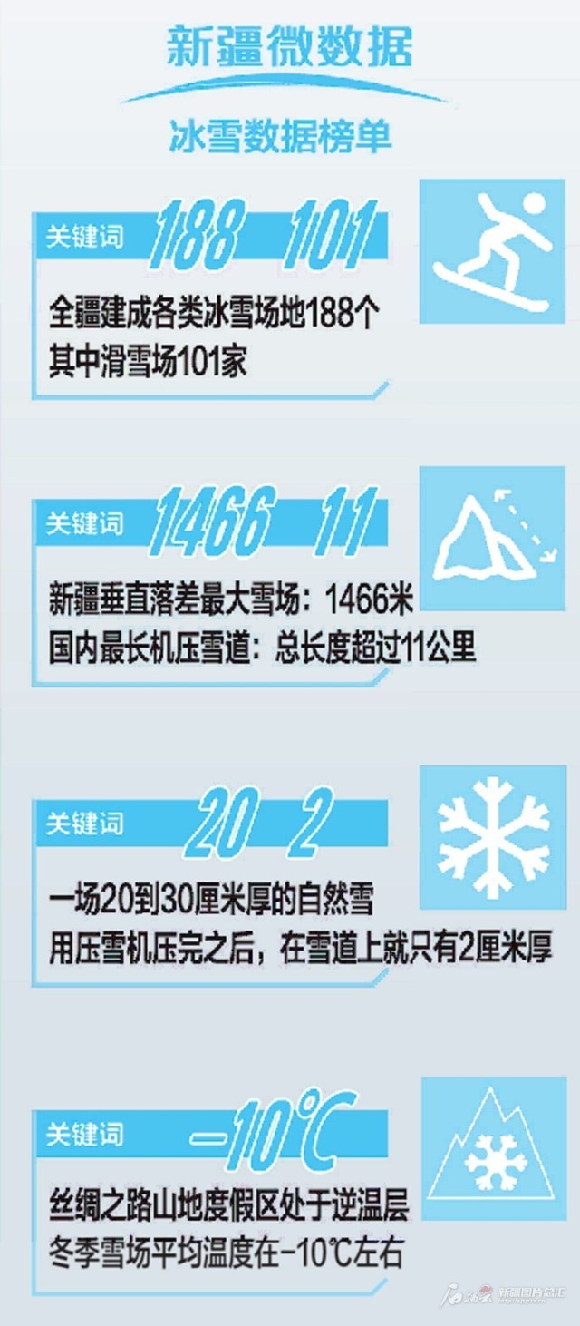 近年來,新疆冰雪旅游蓬勃發(fā)展,最新數(shù)據(jù)顯示,全疆建成各類冰雪場地188個(gè),其中滑雪場101家。位于冰雪黃金緯度帶,散落在天山、阿爾泰山的滑雪場,有一份亮眼的成績單:雪季最長、落差最大、雪道最多、景色最美……新疆極致冰雪體驗(yàn)背后那些不為人知的故事,記者來為你揭秘。