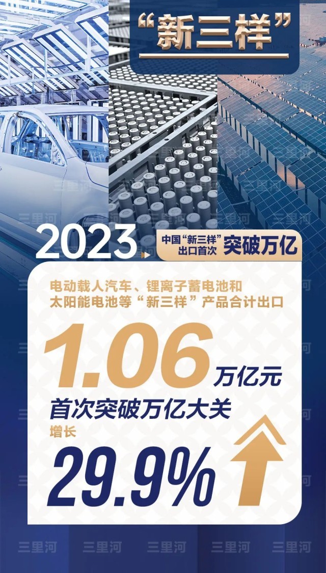活力來自新動能——制造業(yè)技改投資增長3.8%,高技術(shù)產(chǎn)業(yè)投資增長10.3%,快于全部固定資產(chǎn)投資的增速。2023年電動載人汽車、鋰電池和太陽能電池等“新三樣”產(chǎn)品合計出口1.06萬億元,首次突破萬億大關。中國經(jīng)濟在加快培育新質(zhì)生產(chǎn)力中不斷發(fā)展壯大。