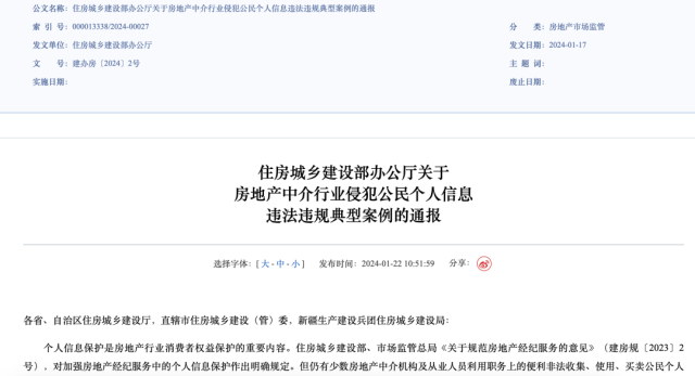1月22日上午,住建部官網(wǎng)通報(bào)了5起房地產(chǎn)中介行業(yè)侵犯公民個(gè)人信息違法違規(guī)典型案例: