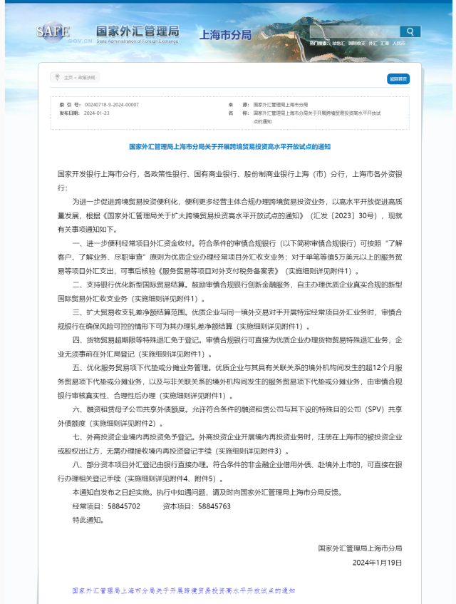 央視網(wǎng)消息:1月23日,國家外匯管理局上海市分局發(fā)布《關(guān)于開展跨境貿(mào)易投資高水平開放試點(diǎn)的通知》。