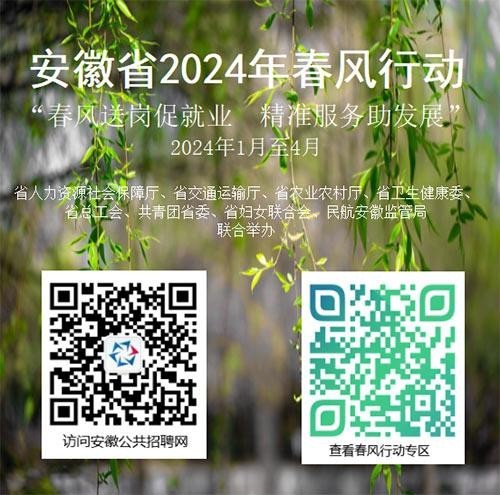 12.安徽省聚焦多舉措宣傳落實就業(yè)政策、高密度舉辦專場招聘、創(chuàng)新性組織勞務協作、精細化開展技能培訓和用心用情“送溫暖”的“4+1”模式,高規(guī)格部署開展全省2024年“春風行動”。活動期間,全省公共就業(yè)人才服務機構將舉辦各類招聘會3000余場。