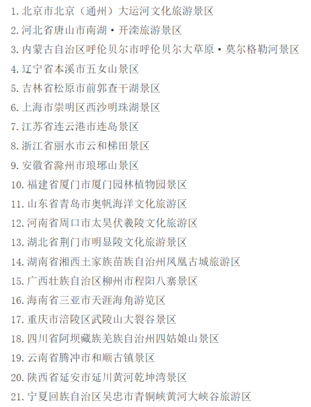 國家5A級旅游景區(qū)新增21家