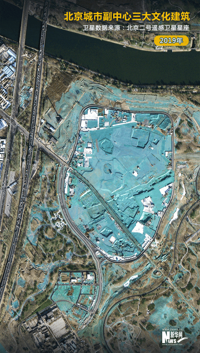 衛(wèi)星圖顯示,在皚皚白雪映襯下,北京藝術(shù)中心的古糧倉造型格外顯眼;北京大運河博物館的“古韻風(fēng)帆”意蘊濃厚;北京城市圖書館設(shè)計別致,好似“赤印”落于城市綠心的畫卷上……