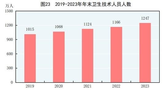 年末全國(guó)共有醫(yī)療衛(wèi)生機(jī)構(gòu)107.1萬個(gè),其中醫(yī)院3.9萬個(gè),在醫(yī)院中有公立醫(yī)院1.2萬個(gè),民營(yíng)醫(yī)院2.7萬個(gè);基層醫(yī)療衛(wèi)生機(jī)構(gòu)101.6萬個(gè),其中鄉(xiāng)鎮(zhèn)衛(wèi)生院3.4萬個(gè),社區(qū)衛(wèi)生服務(wù)中心(站)3.7萬個(gè),門診部(所)36.2萬個(gè),村衛(wèi)生室58.3萬個(gè);專業(yè)公共衛(wèi)生機(jī)構(gòu)1.2萬個(gè),其中疾病預(yù)防控制中心3426個(gè),衛(wèi)生監(jiān)督所(中心)2791個(gè)。衛(wèi)生技術(shù)人員1247萬人,其中執(zhí)業(yè)醫(yī)師和執(zhí)業(yè)助理醫(yī)師478萬人,注冊(cè)護(hù)士563萬人。醫(yī)療衛(wèi)生機(jī)構(gòu)床位1020萬張,其中醫(yī)院800萬張,鄉(xiāng)鎮(zhèn)衛(wèi)生院151萬張。全年總診療人次95.6億人次,出院人次3.0億人次。