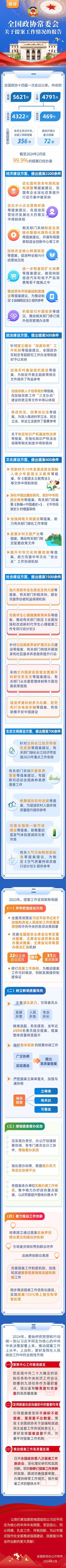 全國政協(xié)十四屆一次會議以來,共收到提案5621件,立案4791件。截至2024年2月底,99.9%的提案已經(jīng)辦復(fù)。