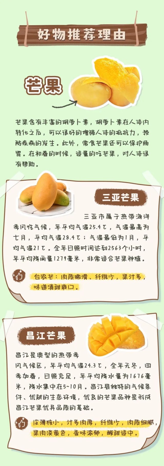 金黃色的外皮,鮮嫩的果肉,香甜的汁水,讓芒果備受人們喜愛(ài)。芒果原產(chǎn)印度和馬來(lái)西亞,據(jù)考證,芒果是被唐代的玄奘法師帶回中國(guó)的。在《大唐西域記》中記載“庵波羅果,見(jiàn)珍于世”。如今,我國(guó)的臺(tái)灣、廣東、廣西、海南、福建及云南等地都有芒果種植。