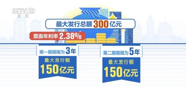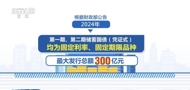 根據(jù)財(cái)政部公告,2024年第一期、第二期儲(chǔ)蓄國債(憑證式)均為固定利率、固定期限品種,最大發(fā)行總額300億元。其中,第一期期限為3年,最大發(fā)行額150億元,票面年利率2.38%;第二期期限為5年,最大發(fā)行額150億元,票面年利率2.5%。