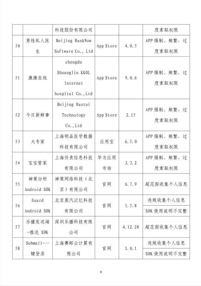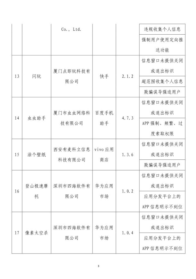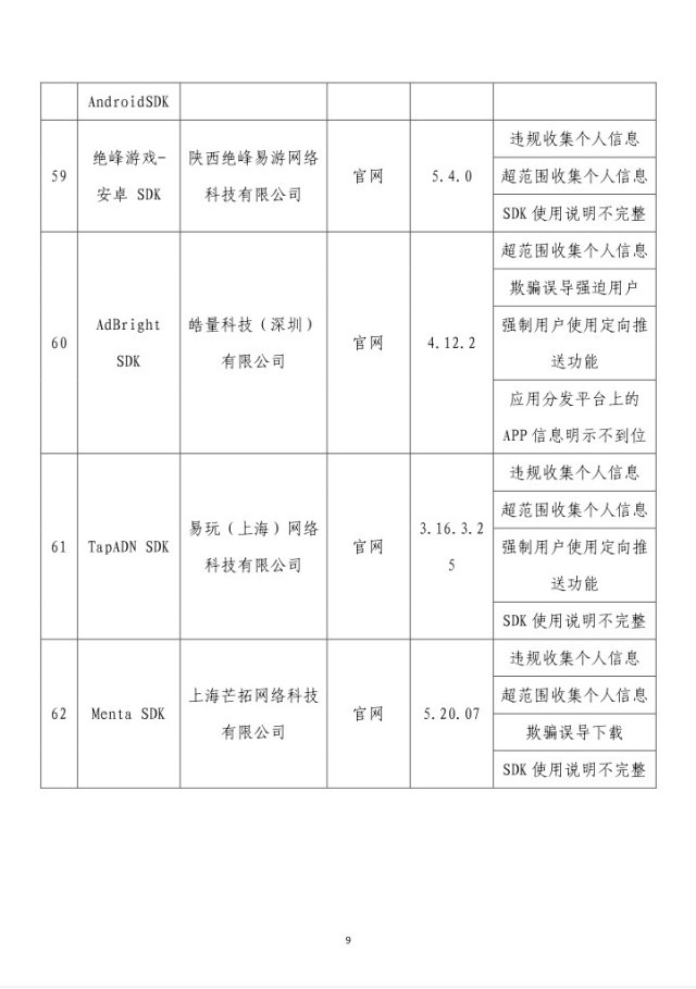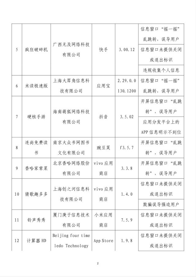 央視網(wǎng)消息:據(jù)工業(yè)和信息化部網(wǎng)站消息,工業(yè)和信息化部信息通信管理局3月14日公布《關于侵害用戶權益行為的APP(SDK)通報(2024年第2批,總第37批)》: