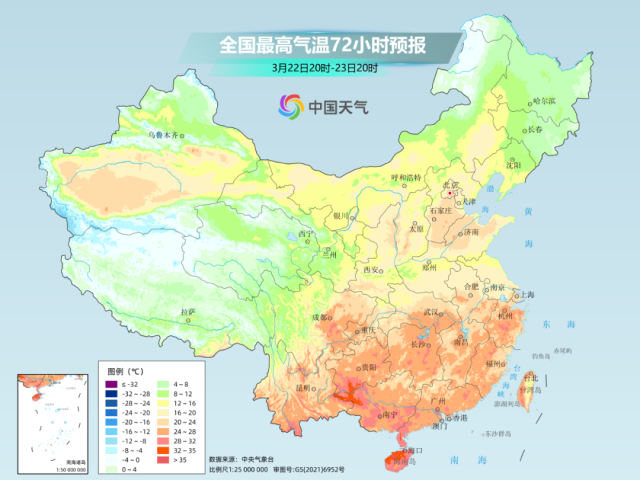 而江南、華南一帶的氣溫高點(diǎn)多出現(xiàn)在23日至25日,屆時(shí)不少地方最高氣溫將沖到30℃以上,暖熱程度遠(yuǎn)超常年同期。大城市中,杭州25日最高氣溫或達(dá)32℃,打卡初夏體驗(yàn);福州24、25日最高氣溫可能達(dá)到34℃,距離高溫只有“一步之遙”。