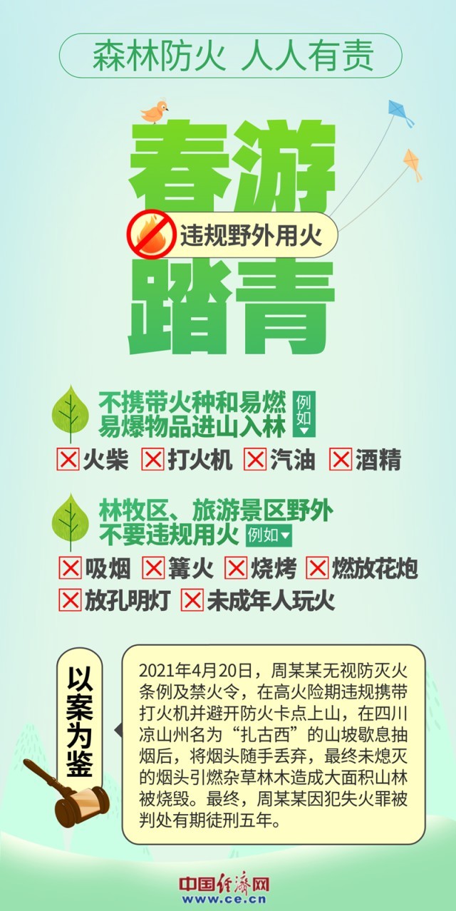 中國經(jīng)濟(jì)網(wǎng)北京4月3日訊(記者 楊秀峰 李冬陽 景遠(yuǎn))近期,春耕生產(chǎn)、踏青旅游、民俗祭祀等活動(dòng)逐漸增多,一些地區(qū)接連發(fā)生森林火災(zāi);一些地區(qū)火險(xiǎn)等級居高不下,全國各地陸續(xù)進(jìn)入春季防火緊要期,防滅火形勢嚴(yán)峻復(fù)雜。