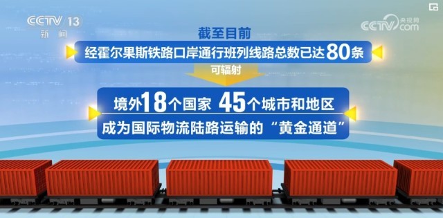 自2016年開出首趟中歐班列以來,經(jīng)霍爾果斯海關(guān)監(jiān)管的中歐(中亞)班列總量已超過3.5萬列。截至目前,經(jīng)霍爾果斯鐵路口岸通行班列線路總數(shù)已達(dá)80條,可輻射境外18個國家、45個城市和地區(qū),成為國際物流陸路運(yùn)輸?shù)摹包S金通道”。