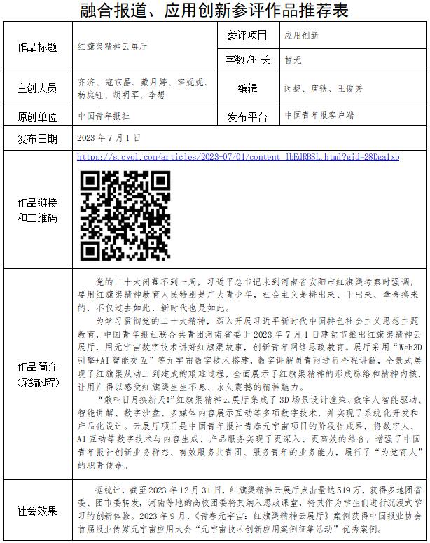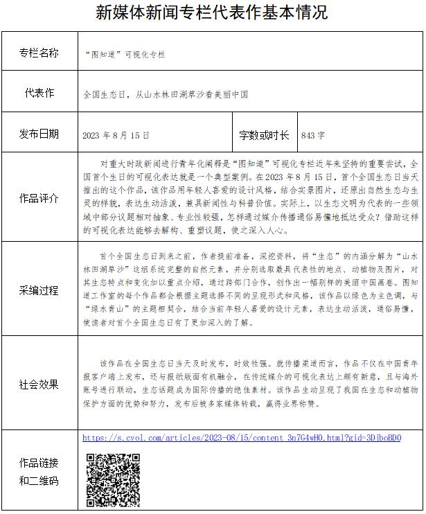 中國青年報(bào)社推薦參評第34屆中國新聞獎(jiǎng)融合報(bào)道、應(yīng)用創(chuàng)新和新媒體新聞專欄作品專項(xiàng)初評公示