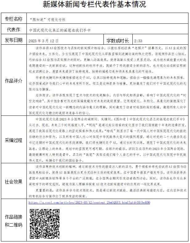 根據(jù)第34屆中國新聞獎(jiǎng)融合報(bào)道、應(yīng)用創(chuàng)新和新媒體新聞專欄作品專項(xiàng)初評工作通知的有關(guān)要求,經(jīng)向報(bào)社各部門單位征集、報(bào)社評委會研究推薦,報(bào)社領(lǐng)導(dǎo)同意,擬推薦以下作品參加專項(xiàng)初評。