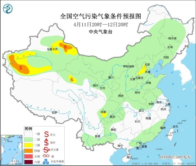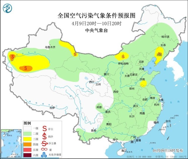 央視網(wǎng)消息:中央氣象臺網(wǎng)站4月9日18時發(fā)布環(huán)境氣象公報: