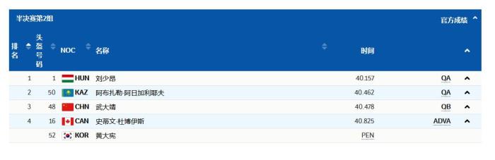 短道速滑男子500米半決賽:武大靖位列小組第三
