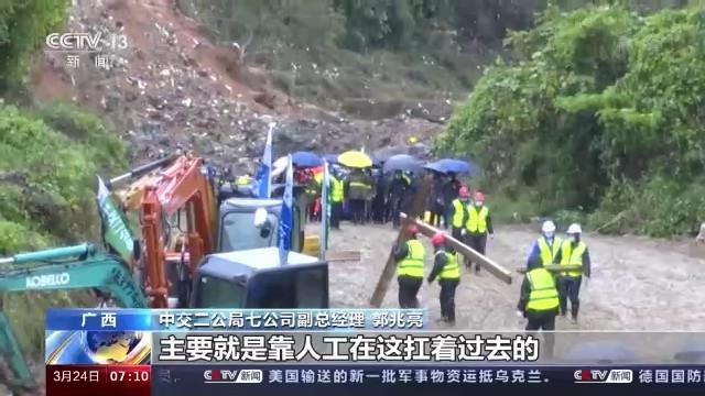 總臺央視記者 王世玉:我現(xiàn)在的位置是廣西梧州藤縣莫埌村的入口,也是通往事故核心區(qū)的一條必經(jīng)之路。大家看到在我身后的貨車正在進(jìn)行物資的裝卸,裝卸的物資是竹排。為什么要進(jìn)行竹排的運(yùn)輸呢?因為(現(xiàn)場)從昨天晚上開始就一直在降雨,可以看到路面非常泥濘,在核心區(qū)內(nèi)通行更是非常困難。施工人員想到用竹排鋪滿在路面上,方便物資和人員的運(yùn)輸和通行。