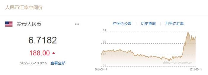 中新財(cái)經(jīng)6月13日電 中國人民銀行授權(quán)中國外匯交易中心公布,2022年6月13日銀行間外匯市場人民幣匯率中間價(jià)為:1美元對人民幣6.7182元。這較上一交易日下調(diào)188個(gè)基點(diǎn)。(完)