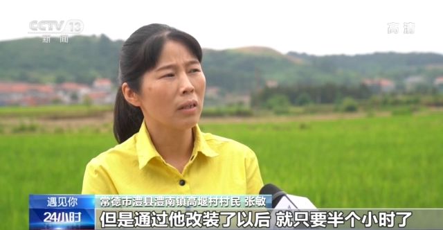 常德市澧縣澧南鎮(zhèn)高堰村村民 張敏:以前耕一畝田大概要一個小時,但是通過他改裝以后,就只要半個小時了,減少人工成本,提高效率。