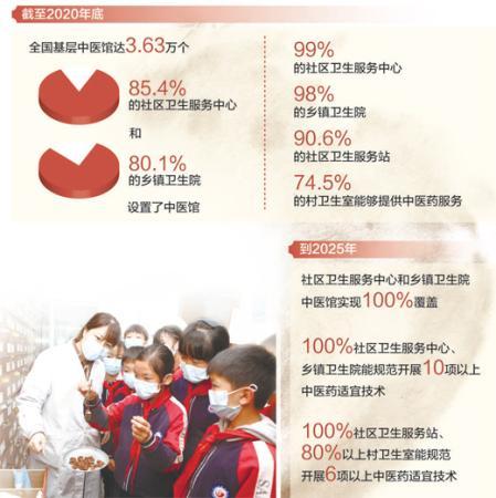充分發(fā)揮中醫(yī)藥在基層健康服務(wù)中的獨(dú)特優(yōu)勢(shì),中醫(yī)館的作用不容忽視。今年3月,國(guó)家中醫(yī)藥管理局等10部門(mén)聯(lián)合印發(fā)的《基層中醫(yī)藥服務(wù)能力提升工程“十四五”行動(dòng)計(jì)劃》提出,到2025年,社區(qū)衛(wèi)生服務(wù)中心和鄉(xiāng)鎮(zhèn)衛(wèi)生院中醫(yī)館實(shí)現(xiàn)全覆蓋,鼓勵(lì)有條件的地方對(duì)15%的社區(qū)衛(wèi)生服務(wù)中心和鄉(xiāng)鎮(zhèn)衛(wèi)生院中醫(yī)館完成服務(wù)內(nèi)涵建設(shè)。
