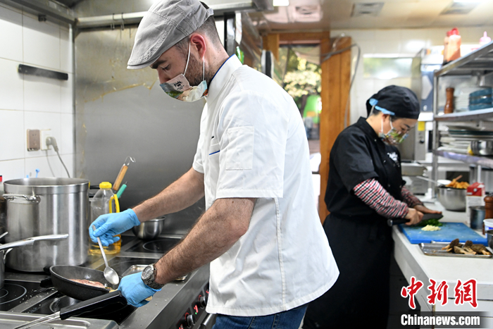 圖為6月29日,云南昆明,法國廚師文森特在廚房內忙碌。 中新社記者 李嘉嫻 攝