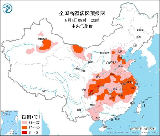 預(yù)計今天白天,陜西南部、河北大部、北京、天津、山東、河南、安徽、江蘇、上海、湖北、湖南大部、江西中北部、浙江、福建西北部、四川東部、重慶、貴州東部和南部、廣西西部等地有35℃以上的高溫天氣,其中,陜西南部、河北東部和南部、天津南部、山東北部、河南中南部、安徽西部和南部、江蘇中南部、上海大部、湖北西部、湖南北部、江西北部、浙江、四川東部、重慶、貴州東北部等地部分地區(qū)最高氣溫37~39℃,重慶局地可達40℃以上。