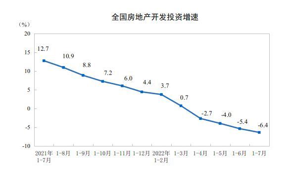 國家統(tǒng)計局:前7月全國房地產(chǎn)開發(fā)投資同比下降6.4%