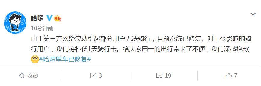 哈啰回應(yīng)單車(chē)崩了:系統(tǒng)已修復(fù) 補(bǔ)償1天騎行卡