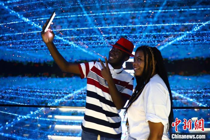 “這個(gè)全息投影場景和以往我們?nèi)ミ^的地方都不同,這里通過數(shù)字化的科技手段讓我看到了中國的發(fā)展,了解到中國文化,很神奇、很震撼?!眮碜匀汗埠蛧陌⒗锓浅O矚g這個(gè)全息投影場景,與其他留學(xué)生紛紛拿出手機(jī)拍照留念。