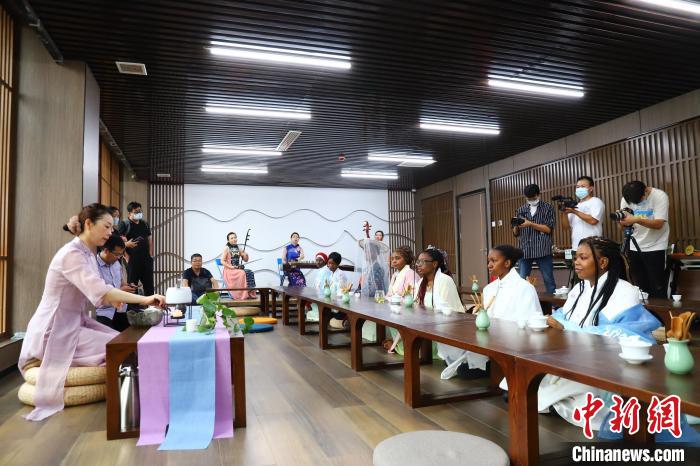 留學(xué)生還更換漢服、唐裝,跟隨老師學(xué)習(xí)茶藝,并品嘗了自己親手泡制的泰山女兒茶。在品茶之余,大家又一起體驗(yàn)了中國古典樂器之美,一曲享譽(yù)海內(nèi)外的中國民歌《茉莉花》,讓在場的留學(xué)生一起跟著哼唱,體悟中國傳統(tǒng)文化的魅力。