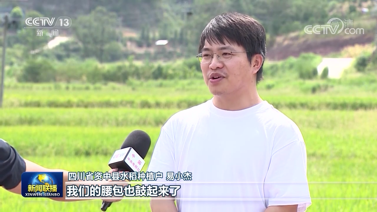 四川省資中縣水稻種植戶 易小杰:全程實(shí)行機(jī)械化耕種,產(chǎn)量也上去了,我們的腰包也鼓起來了。
