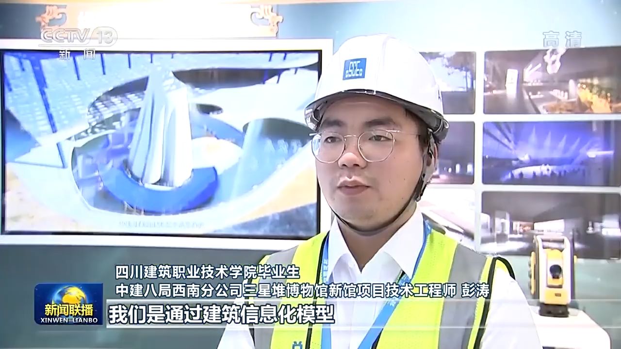 四川建筑職業(yè)技術(shù)學(xué)院畢業(yè)生 中建八局西南分公司三星堆博物館新館項(xiàng)目技術(shù)工程師 彭濤:我們是通過(guò)建筑信息化模型,提前搭建虛擬博物館,把各種風(fēng)險(xiǎn)提前排除,智能建造讓我們加速奔向未來(lái)社會(huì)。今天的職業(yè)教育是很有預(yù)見(jiàn)性的,讓我提前獲得了建筑信息模型技術(shù)及大數(shù)據(jù)等多種本領(lǐng)。