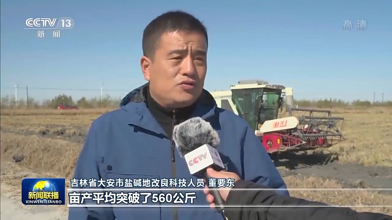吉林省大安市鹽堿地改良科技人員 董要東:經(jīng)過我們實(shí)打?qū)嵤諟y(cè)產(chǎn),畝產(chǎn)平均突破560公斤。
