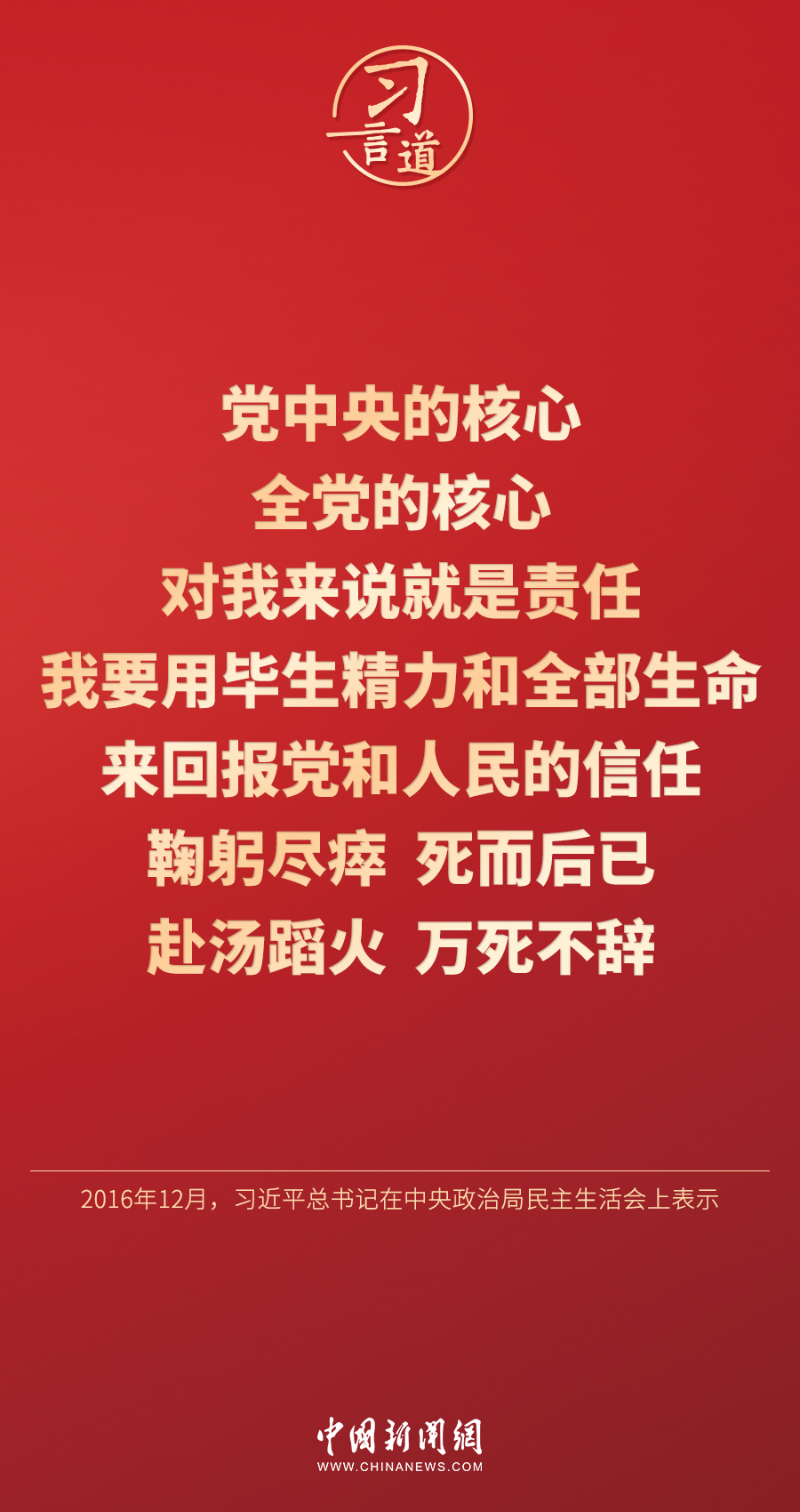習(xí)言道|“黨中央的核心、全黨的核心,對(duì)我來(lái)說(shuō)就是責(zé)任”