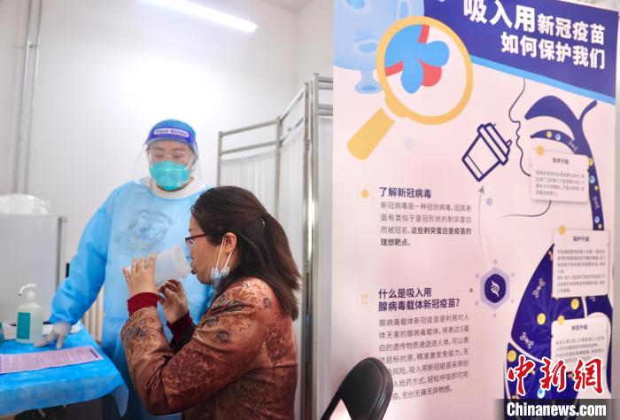 圖為北京市豐臺區(qū)成壽寺街道吸入用新冠疫苗接種現(xiàn)場。 中新社易海菲 攝