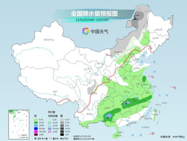 中國天氣網(wǎng)訊 昨天(11月17日)開始,新一股冷空氣自新疆開始自西向東逐漸影響我國其它地區(qū),今明兩天,長江以北地區(qū)將陸續(xù)迎來明顯降溫,華北、東北等地還會有雨雪天氣現(xiàn)身,局地降水猛烈。而在南方,今明兩天,雨水也將繼續(xù)營業(yè),20日短暫“調(diào)休”一天,21日至22日,新一輪降雨又將上線,幾乎無縫銜接。